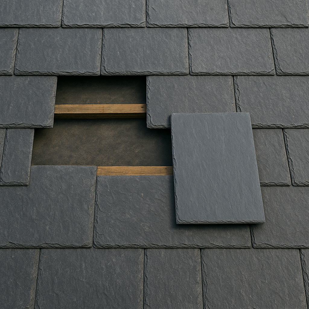 Tuile cassée ? Ardoise manquante ? Nous remplaçons les éléments défectueux pour garantir une toiture étanche et esthétique.